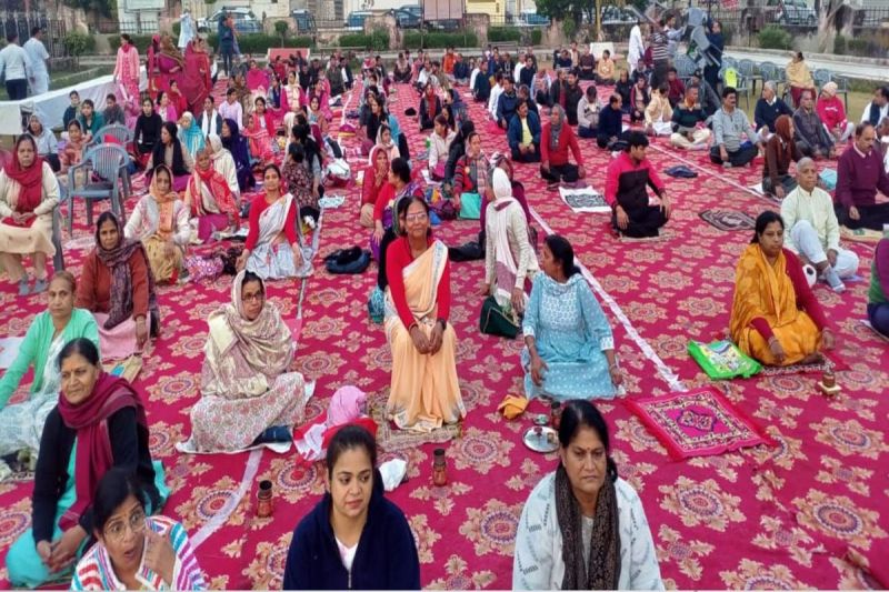 Sadhaks flocked to the Sadhna camp in the garden in winter