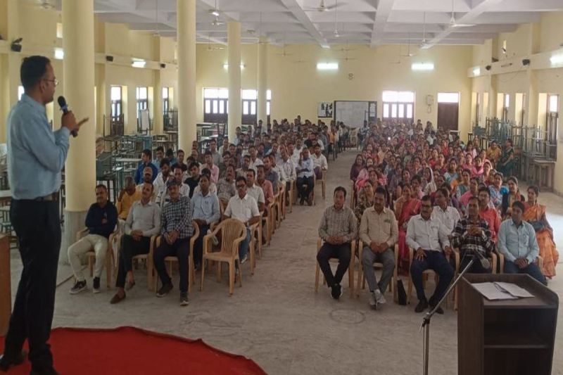 Bhilwara news : राष्ट्रीय बाल संरक्षण अधिकार आयोग एवं शिक्षा विभाग के संयुक्त तत्वावधान में जिला स्तरीय परीक्षा पर्व कार्यक्रम का आयोजन सेठ मुरलीधर मानसिंहका कन्या विद्यालय में हुआ। इसमें जिले के समस्त ब्लॉकों से 250 शिक्षकों ने हिस्सा लिया। कार्यक्रम का उद्देश्य विद्यार्थियों को परीक्षा के दौरान और बाद में होने वाले तनाव, चिंता एवं भय को दूर कर एक नया दृष्टिकोण विकसित करना है। कार्यक्रम के मुख्य अतिथि भारतीय राजस्व सेवा के अधिकारी अनिरुद्ध वैष्णव ने बताया कि परीक्षा जीवन नहीं है, परिणाम हमारा स्टेटस नहीं है। नौकरी, व्यापार हमारी पहचान का आधार नहीं है, हमारी पहचान का आधार हमारा व्यक्तित्व व हमारा चरित्र है। अभिलाष मोदी ने सभी शिक्षकों से आग्रह किया कि एक शिक्षक जब स्वयं में सुलझा हुआ रहेगा तो विद्यार्थी उसे ज्यादा स्वीकार करेगा। कार्यक्रम की अध्यक्षता अरुणा गारू ने की। जिला शिक्षा अधिकारी एवं कार्यक्रम संयोजक रामेश्वर जीनगर ने सभी शिक्षकों से विद्यार्थियों से संवाद करने का आह्वान किया। कार्यक्रम के सह संयोजक एपीसी दिनेश कोली ने विचार रखें। विद्यालय की प्रधानाचार्य आशा लड्ढा ने आभार जताया। कार्यक्रम में डायट प्रिंसिपल सत्यनारायण नागर भी उपस्थित थे। संचालन चंद्र प्रकाश मारू, अक्षय जोशी व पंकज पंवार ने किया।