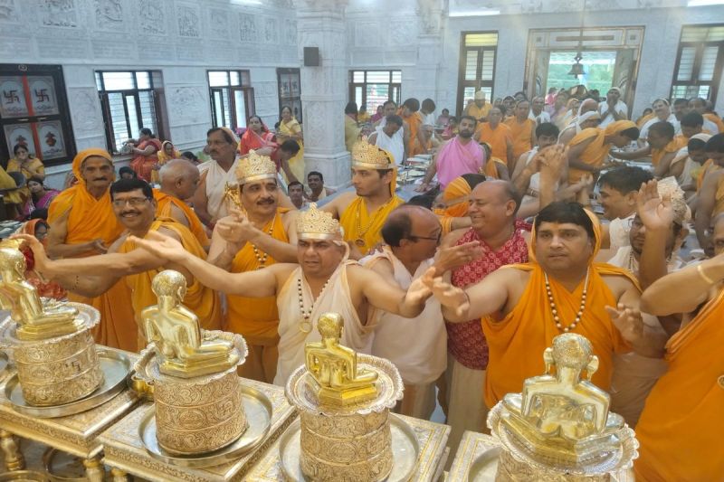 आरके कॉलोनी स्थित आदिनाथ दिगम्बर जैन मंदिर ट्रस्ट अध्यक्ष नरेश गोधा ने बताया कि 300 से अधिक श्रावकों ने पंक्ति बद होकर मूलनायक आदिनाथ भगवान एवं अन्य जिन प्रतिमाओं का अभिषेक किया। ओमचंद रिखबचंद ने सौधर्म इंद्र बन कर रत्नवर्ष्टि करते हुए स्वर्ण मुकुट धारण कर 108 रिद्धि मंत्र से अभिषेक व स्वर्ण झारी से शांतिधारा की। इसके अलावा अन्य प्रतिमाओं पर अजित अग्रवाल, सुभाष सेठी, सनत अजमेरा, विनोद फँदोत, अशोक बड़जात्या, भागचंद कासलीवाल, आत्म प्रकाश लुहाड़िया, विशाल जैन, कमल पाटनी, खेमराज कोठारी ने शांतिधारा की।