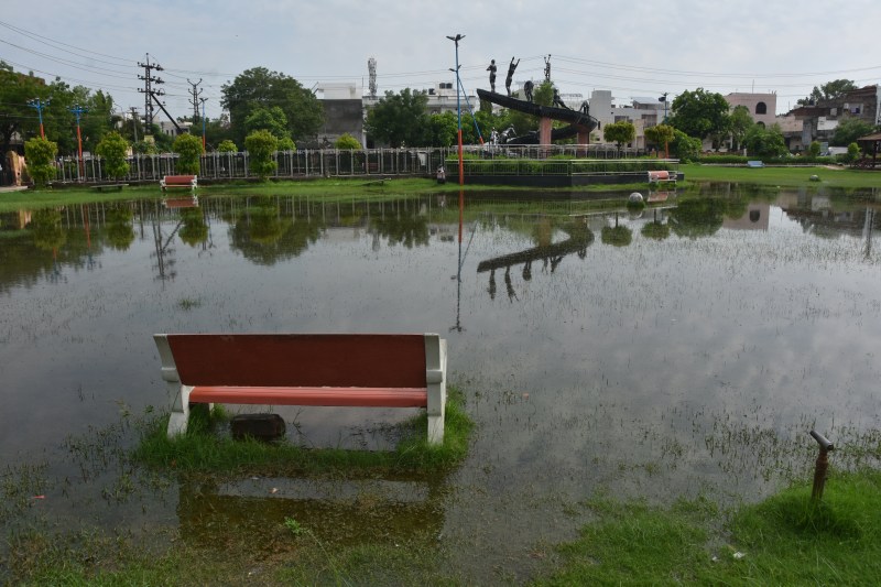 शहर के पार्क बने तालाब, बारिश का पानी भरा
