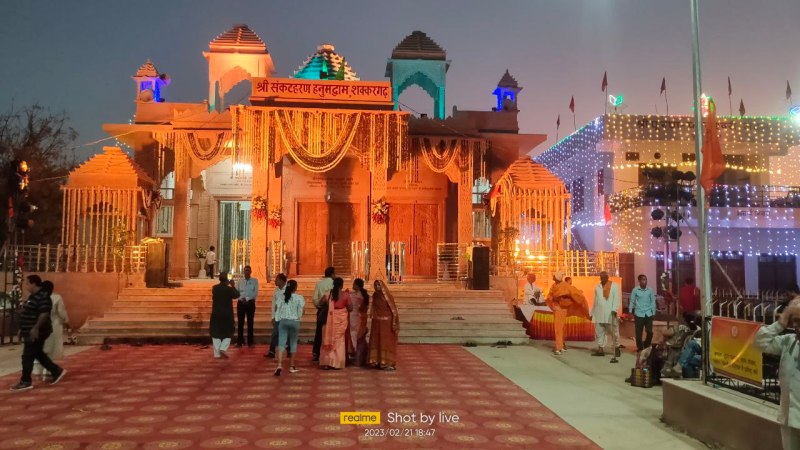 नेशनल हाइवे के निकट मंदिर का भव्य मुख्य द्वार शक्करगढ़ गोशाला की ट्रस्टी सुशील लढ़ा के पिता सुरेशचंद्र लड्ढा की स्मृति में बनवाया गया। उज्जैन से ढाई सौ किलो पारे से निर्मित पारद शिवलिंग एवं जयपुर से विष्णु भगवान की विशाल प्रतिमा शक्करगढ़ के हनुमत धाम में पहुंची। जो 22 फरवरी को विधि विधान के साथ स्थापित होगी।