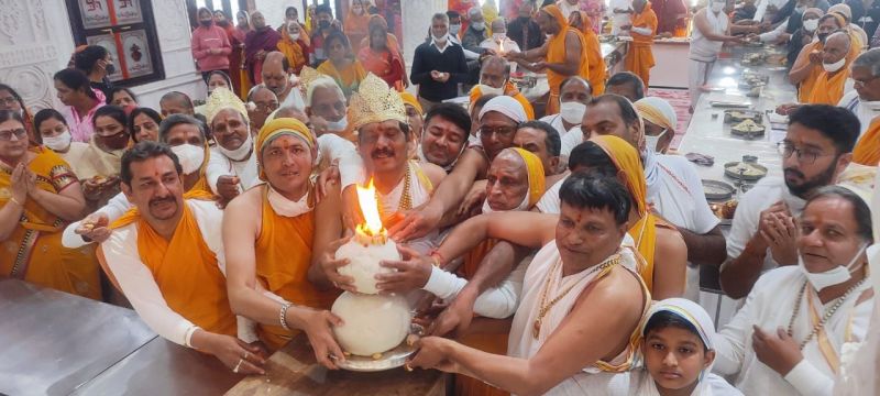 गोधा ने बताया कि अशोक एवं शकुंतला गंगवाल ने सौधर्म इन्द्र और शची इन्द्राणी के रूप में नाचते एवं र्त्न वृष्टि करते हुए मंदिर में प्रवेश कर मूलनायक प्रतिमा का 108 रिद्धी मंत्रों से अभिषेक एवं स्वर्ण झारी से शांतिधारा की। महेन्द्र विपिन सेठी ने विधिनायक एवं राजेन्द्र सेठी ने प्राचीन प्रतिमा पर शांतिधारा की। कैलाश झांझरी, आत्म प्रकाश लुहाडिया, कैलाश सोनी, राजेन्द्र अजमेरा, महावीर पहाडिया, निलेश छाबड़ा, दिलीप गंगवाल ने अन्य प्रतिमाओं पर शांतिधारा की। पूनम कोठारी, सुरेन्द्र गोधा के निर्देशन में सामूहिक पूजन के साथ 9 बजे निर्वाण लड्डू चढ़ाया गया। इस अवसर पर सुरेश गदिया, एनसी जैन, राजकुमार सेठी, राजकुमार अग्रवाल सहित सैकड़ों श्रावक उपस्थित थे।