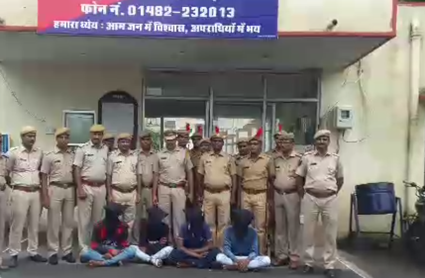 भीलवाड़ा। चाकूबाजी और लूट के मामले का पुलिस ने खुलासा करते हुए चार आरोपितों को गिरफ्तार किया है। इस गिरोह में शामिल आरोपियों ने एक ही रात में चार राहगीरों को निशाना बनाया था। इस दौरान राहगीरों से नगदी, गहने व मोबाइल लूटकर आरोपी मौके से फरार हो गए थे। इसके बाद से पुलिस आरोपितों की तलाश कर रही थी।