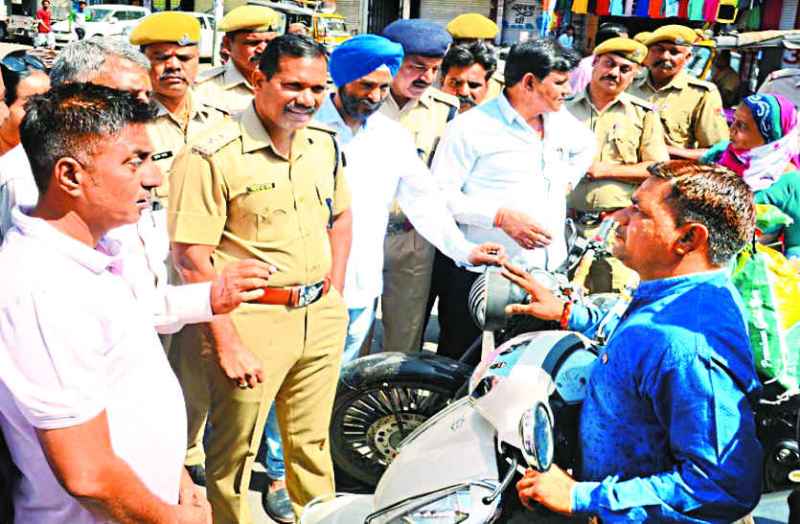 शहर में 29 वें सड़क सुरक्षा सप्ताह का आगाज प्रदर्शनी और अन्य कार्यक्रमों के साथ हुआ। इस दौरान पुलिस कंट्रोल रूम के सामने जब जिला कलक्टर मुक्तानंद अग्रवाल और अतिरिक्त पुलिस अधीक्षक पारसमल जैन परिवहन विभाग और लियो यूथ ग्रुप की यातायात प्रदर्शनी का उद्घाटन कर रहे थे, तभी वहां बिना नम्बर और बिना हेलमेट पहले दुपहिया वाहन चालक गुजर रहे थे। इस पर एएसपी ने वाहनों को रोककर जांच शुरू की।