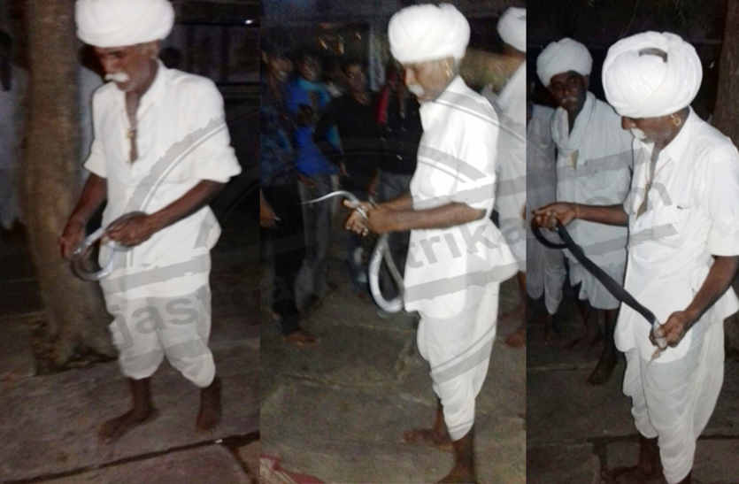 जानकारी के अनुसार क्षेत्र के दलपुरा के सुप्रसिद्ध देवनारायण मंदिर में गुरुवार रात एक कोबरा मंदिर में घुस गया। उस समय सातुरों की झोपड़ियां निवासी देवकरण सातुर वहां दर्शन करने आया हुआ था। लोगों ने इसकी जानकारी उसे दी। उसने पलक झपकते ही कोबरा को ऐसे पकड़ लिया जैसे कोई खिलौना हो। यह देख लोग आश्चर्य चकित रह गए। उस कोबरा को प्यार से पुचकारने के बाद उसने जंगल में छोड़ दिया।