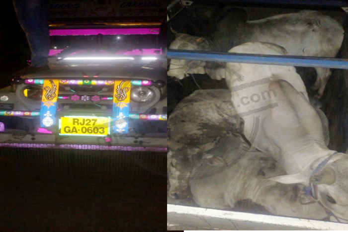 सैर पर निकले तीन ग्रामीणों की सजगता से पिकअप में ठूंस-ठूंस कर ले जा रहे पांच गोवंश को मुक्त कराया