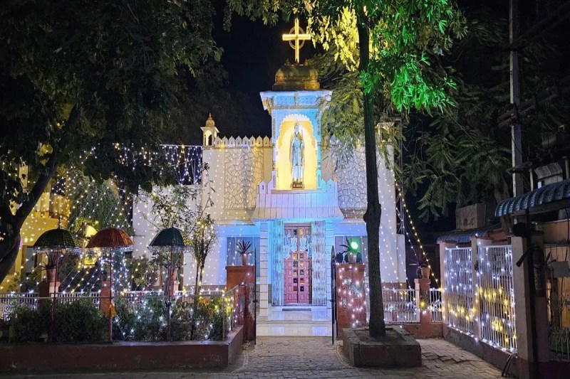 चर्च परिसरों में भगवान यीशु के जन्म के दृश्यों को दर्शाती 'चरनी' बनाई गई है, जो विशेष आकर्षण का केंद्र बनी हुई है।
