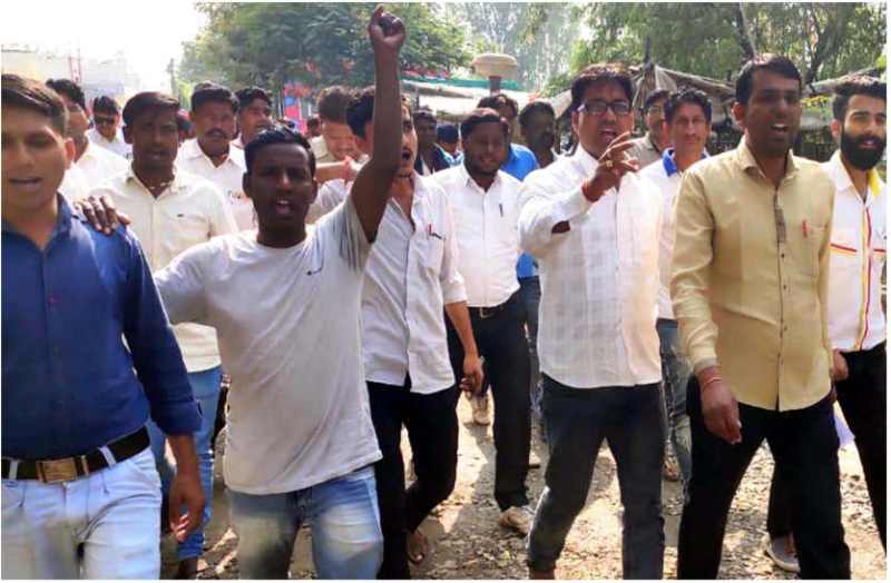 Hundreds of people demonstrated by raising slogans in Bhilwara