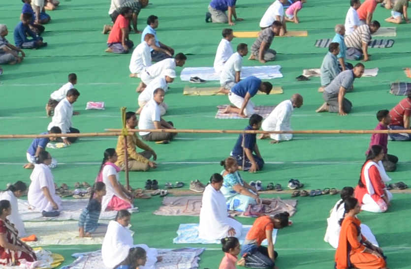 राजेन्द्र मार्ग स्कूल मैदान पर सुबह योगाभ्यास एक अलग ही नजारा दिखाई दिया। जनप्रतिनिधिए अधिकारी व शहरवासियों ने एक साथ विभिन्न आसन किए। राजेंद्र मार्ग स्कूल में में जिला स्तरीय योग का अभ्यास में सांसद सुभाष बहेडियाए विधायक वि_ल शंकर अवस्थी, नगर विकास न्यास अध्यक्ष गोपाल खण्डेलवालए नगर परिषद सभापति ललिता समदानी, जिला प्रमुख शक्ति सिंह हाडा, जिला कलेक्टर सूची त्यागी, अतिरिक्त पुलिस अधीक्षक पारस जैन, न्यास सचिव आशीष शर्मा, आयुक्त पदम सिंह नरुका के साथ साथ छात्र-छात्राओं व खिलाडिय़ों ने अलग अलग आसन किए।
