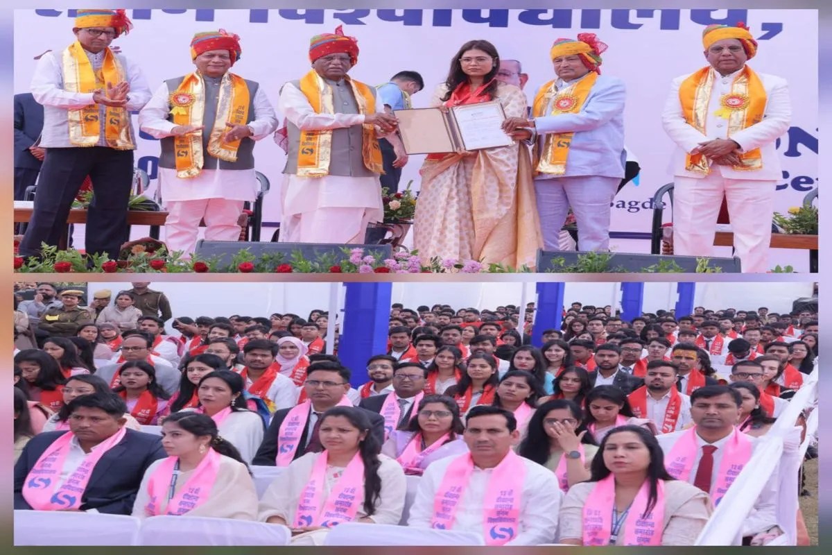 बागड़े ने शैक्षणिक सत्र 2024-25 के 30 स्नातक, स्नातकोत्तर व डिप्लोमा विद्यार्थियों को उनकी उत्कृष्ट उपलब्धियों के लिए स्वर्ण पदक पहनाकर सम्मानित किया। इसके साथ 31 शोधार्थियों को पीएचडी की उपाधियां प्रदान की। इस अवसर पर सांसद दामोदर अग्रवाल ने कहा कि आधुनिकता की दौड़ में युवाओं के लिए स्वयं की जड़ों को मजबूत रखना बेहद जरूरी है। शिक्षा के साथ अपने जीवन मूल्यों और परंपराओं को साथ लेकर चलें। आईआईएम इंदौर के प्रोफेसर पीके सिंह ने कहा कि आज तकनीक बहुत तीव्र गति से बदल रही है, ऐसे में तकनीकी ज्ञान के साथ-साथ भाषाई दक्षता को मजबूत करना भी समय की सबसे बड़ी आवश्यकता है। इससे पूर्व विश्वविद्यालय परिसर में शैक्षणिक शोभायात्रा निकाली। एनसीसी कैडेट्स ने बागड़े को 'गार्ड ऑफ ऑनर' दिया। करुणेश सक्सेना ने प्रतिवेदन प्रस्तुत किया। कुलसचिव आलोक कुमार ने आभार जताया। इस अवसर पर पूर्व सांसद सुभाष बहेड़िया, भाजपा जिलाध्यक्ष प्रशांत मेवाड़ा मौजूद रहे।