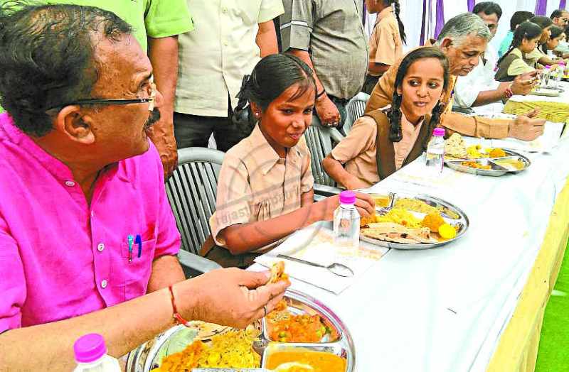 कार्यक्रम में राजकीय उच्च माध्यमिक विद्यालय बापू नगर की रंगाई-पोताई नहीं होने के चलते सिर्फ 50 छात्र-छात्राओं को रसोई में बुलाया। वहां भी शिक्षा मंत्री के साथ कुर्सिर्यों पर मात्र 20 छात्राओं को बिठाया गया। अन्य 30को रसोई के अंदर बरामदे के पर्दा लगाकर फर्श पर बिठा भोजन कराया। बाकी बच्चों को स्कूल केाबरामदे में स्टाफ ने पोषाहार परोसा।