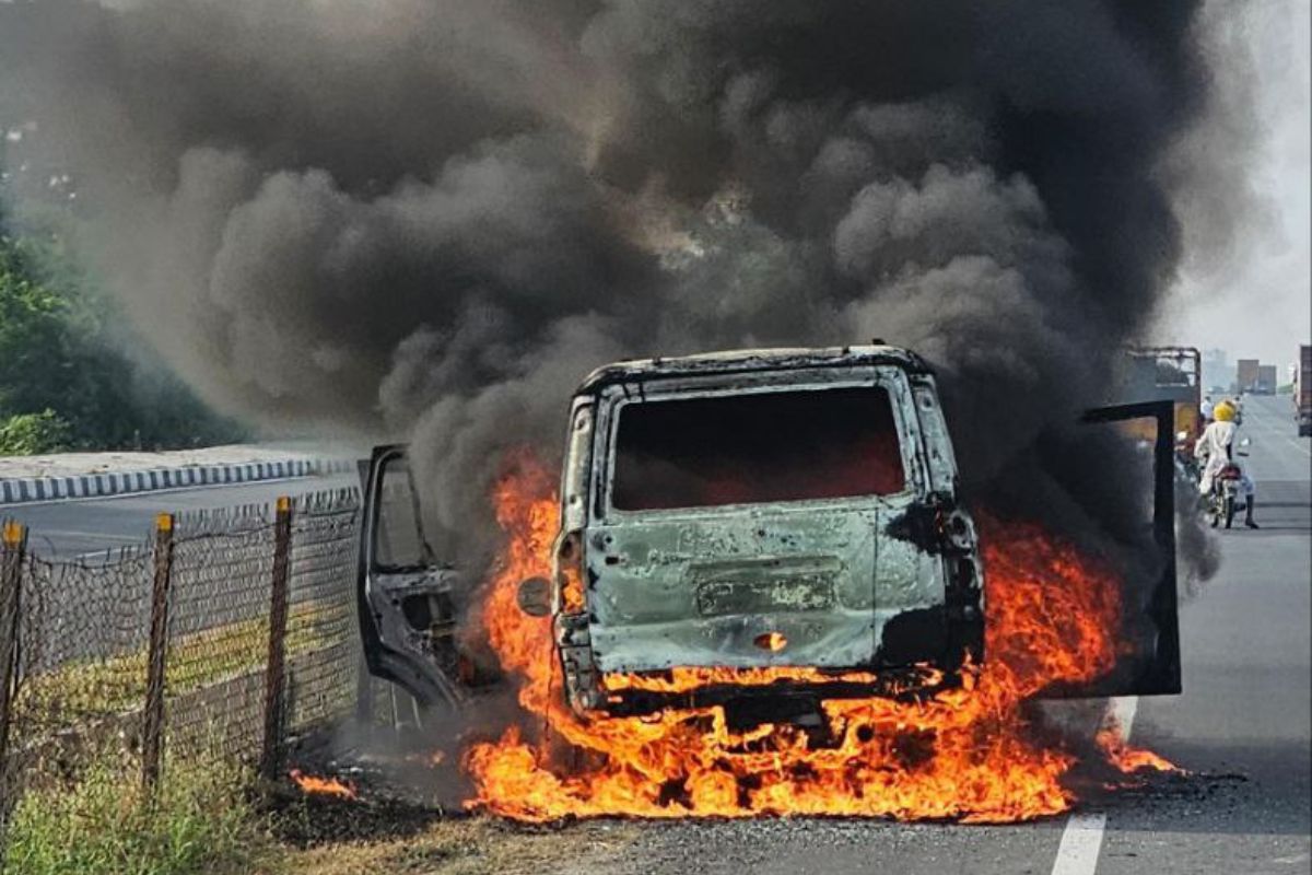 जानकारी के मुताबिक भीलवाड़ा में बेरा चौराहे के पास घटना घटित हुई। अजमेर-भीलवाड़ा नेशनल हाईवे 48 पर चलती लग्जरी कार में अचानक आग लग गई। देखते ही देखते कार आग का गोला बन गई। हालांकि, कार चालक की सूझबूझ से बड़ा हादसा टल गया। कार से धुंआ उठते देख चालक ने कार रोकी और उसमें सवार सभी लोग नीचे उतर गए। अगर पता नहीं चलता तो बड़ा हादसा हो सकता था।