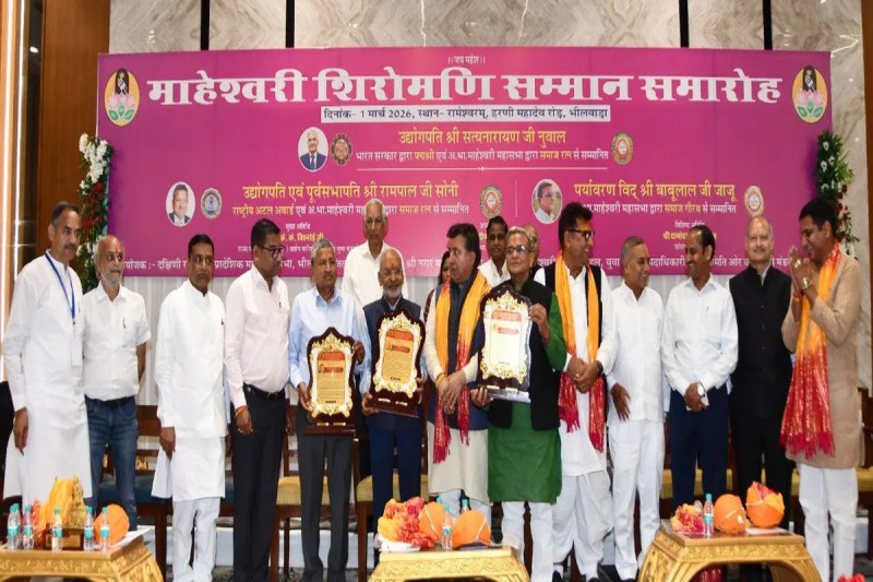 भीलवाड़ा शहर के हरणी महादेव रोड स्थित रामेश्वरम में रविवार को दक्षिणी राजस्थान प्रादेशिक माहेश्वरी सभा, जिला व श्रीनगर माहेश्वरी सभा के संयुक्त तत्वावधान में ‘माहेश्वरी शिरोमणि सम्मान समारोह’ हुआ। गरिमामय वातावरण के बीच उद्योग जगत और समाज सेवा में अंतरराष्ट्रीय स्तर पर पहचान बनाने वाली तीन प्रमुख हस्तियों का सम्मान किया गया। समारोह के मुख्य अतिथि राजस्थान के उद्योग मंत्री केके विश्नोई थे, जबकि अध्यक्षता महासभा के सभापति संदीप काबरा ने की। पद्मश्री सत्यनारायण नुवाल को उद्योग क्षेत्र में नवाचार और राष्ट्र निर्माण में योगदान, अटल अवार्ड विजेता उद्योगपति व पूर्व सभापति रामपाल सोनी को संगठन क्षमता और समाजहित के कार्यों के लिए तथा पर्यावरणविद् बाबूलाल जाजू को पर्यावरण संरक्षण, पौधरोपण और जल संरक्षण के क्षेत्र में उल्लेखनीय कार्यों के लिए समाज रत्न और समाज गौरव से नवाजा गया। इस अवसर पर उद्योग मंत्री विश्नोई ने कहा कि माहेश्वरी समाज ने हमेशा शिक्षा, उद्योग और सेवा के क्षेत्र में देश का नेतृत्व किया है। ऐसे सम्मान समारोह युवाओं को उत्कृष्ट कार्य करने की प्रेरणा देते हैं। कार्यक्रम में सांसद दामोदर अग्रवाल, विधायक अशोक कोठारी, भाजपा जिलाध्यक्ष प्रशांत मेवाड़ा, कांग्रेस देहात जिलाध्यक्ष रामलाल जाट और पूर्व सांसद सुभाष बहेड़िया, राजकुमार कालिया, ममता मोदानी और श्रीकांत बाल्दी का आतिथ्य मिला। भगवान महेश की पूजा और दीप प्रज्ज्वलन के साथ कार्यक्रम की शुरुआत हुई। इस दौरान अतिथियों का पारंपरिक साफा व दुपट्टा पहनाकर स्वागत किया गया। जिलाध्यक्ष अशोक बाहेती ने स्वागत उद्बोधन दिया।