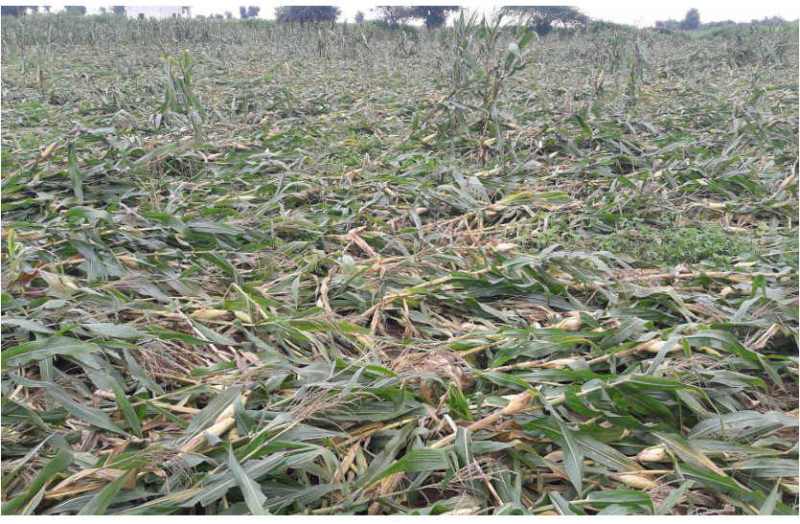 अड़सीपुरा के किसान भगवानलाल तेली किसान ने बताया कि तेज हवाओं के साथ हुई बारिश से खेतों में खड़ी बची हुई मक्का की फसल भी धराशायी हो गयी है जिससे भारी नुकसान हुआ है। मेरे खेत में दो हेक्टर में खड़ी मक्का की फसल तेज बारिश व हवाओं से सारी फसल जमी पर गिर गई। Maize crop destroyed by rain in Bhilwara