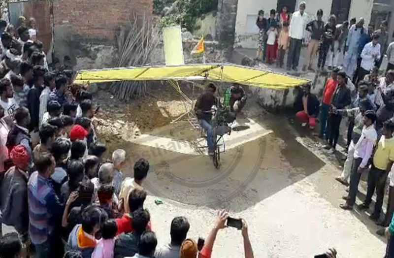 नगर वाशिंदे सुबह 10:00 बजे से ही नदी बांध पर इकट्ठा हो गए। कस्बे के लाडले द्वारा बनाए गए हवाई जहाजनुमा उड़न खटोले की सफलता को देखने के लिए सुबह से ही भीड़ उमड़ रही थी। मगर प्रशासनिक रोक से सभी को मायूसी हाथ लगी।