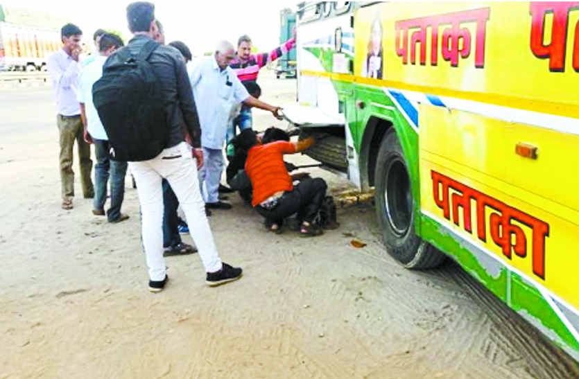 यहां रोडवेज बस स्टैंड से दोपहर एक बजे रवाना हुई नॉन स्टॉप बस में सवार यात्रियों का गुस्सा तब उबाल मारने लगा, जब बस एक्सप्रेस होने के बावजूद हर चौराहे पर रूकने लगी। यात्रियों ने इसका विरोध किया तो चालक व परिचालक यात्रियों से ही उलझ पड़े। जयपुर पहुंचने से पहले ही बस खराब हो गई। उसका टायर फट गया। शाम छह बजे के स्थान पर बस साढ़े सात बजे जयपुर बस स्टैंड पर पहुंची।