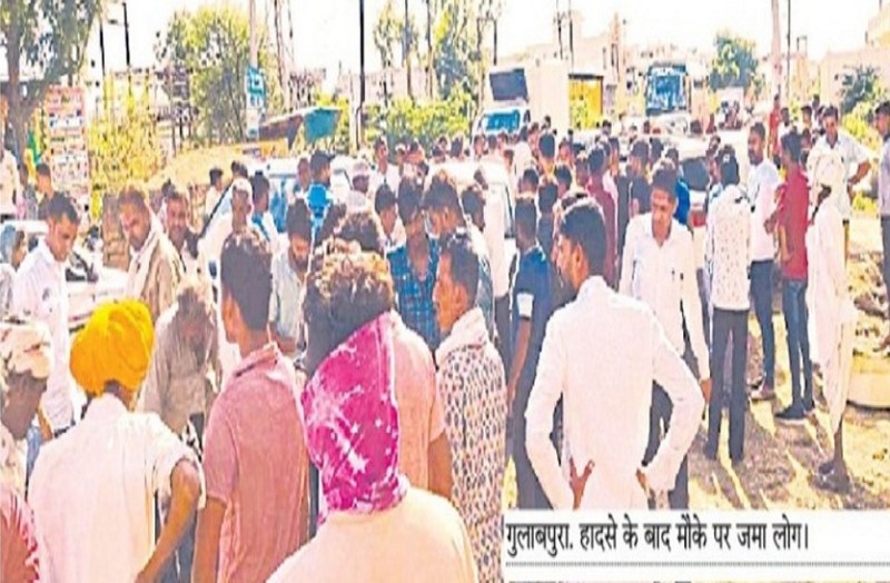 जयपुर/गुलाबपुरा. हुरड़ा तहसील कार्यालय के सामने बेकाबू कार ने मंगलवार शाम सड़क किनारे खड़े एक परिवार के चार जनों को टक्कर मार दी। हादसे में महिला समेत तीन जनों की कुचलने से मौत हो गई जबकि एक की हालत गंभीर बनी है। कार ने सड़क किनारे खड़ी अन्य कार को भी चपेट में ले लिया। अन्य कार भी क्षतिग्रस्त हो गई। गुलाबपुरा पुलिस ने कार जब्त कर दुर्घटना का मामला दर्ज किया। मृतकों का पोस्टमार्टम करा शव परिजनों को सौंपे।