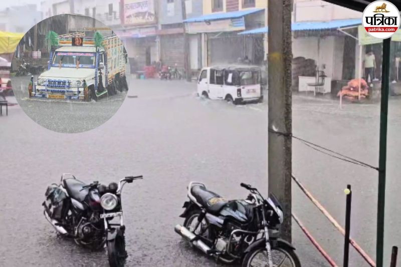 Rain in Bhilwara: भीलवाड़ा जिले में शुक्रवार दोपहर शहर और आसपास के इलाकों में अचानक मौसम ने करवट ली और पिछले दो घंटे से हो रही मूसलाधार बारिश ने जनजीवन अस्त-व्यस्त कर दिया। कई इलाकों में पानी इतना भर गया कि मुख्य सड़कें नदी जैसे बहने लगीं। लोग पैदल और वाहनों के साथ पानी से जूझते दिखे। बाजार, कॉलोनियां और प्रमुख मार्गों पर जलजमाव से यातायात पूरी तरह बाधित हो गया।
