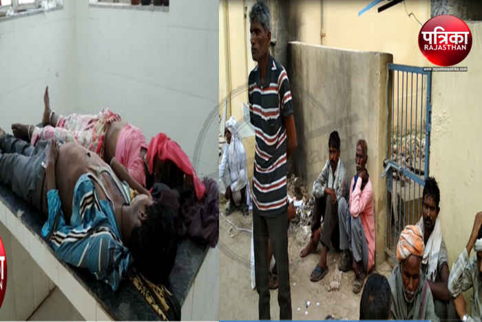 देवरी माता के दर्शन कर लौट रहे दंपती की बाइक बिजली के पोल से टकराने से दंपती की मौत के बाद चिकित्सालय में मौजूद परिजन