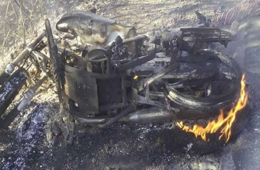 Running bike young man fire in bhilwara