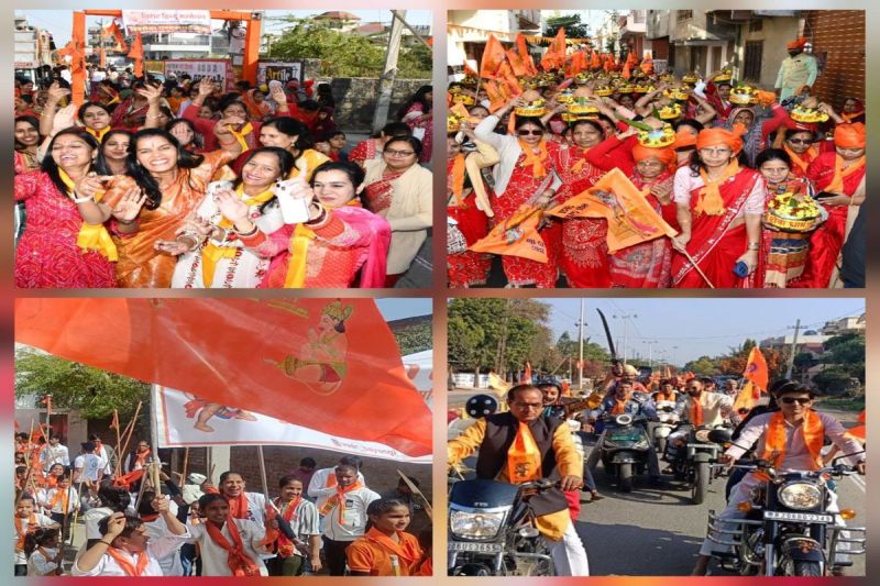 पथिक नगर में दुर्गा शक्ति अखाड़ा और बजरंग दल के युवाओं ने हैरत अंगेज अखाड़ा प्रदर्शन कर शौर्य का परिचय दिया। अग्रवाल भवन में सम्मेलन से पूर्व नारायणी देवी सर्कल से निकली वाहन रैली में 501 कलशों के साथ घोड़े पर सवार शिवाजी महाराज, महाराणा प्रताप और राम मंदिर की सजीव झांकियां आकर्षण का केंद्र रहीं। वर्धमान नगर से 300 से अधिक महिलाओं ने सिर पर मंगल कलश धारण कर अपनी संस्कृति के प्रति अटूट आस्था प्रकट की।
