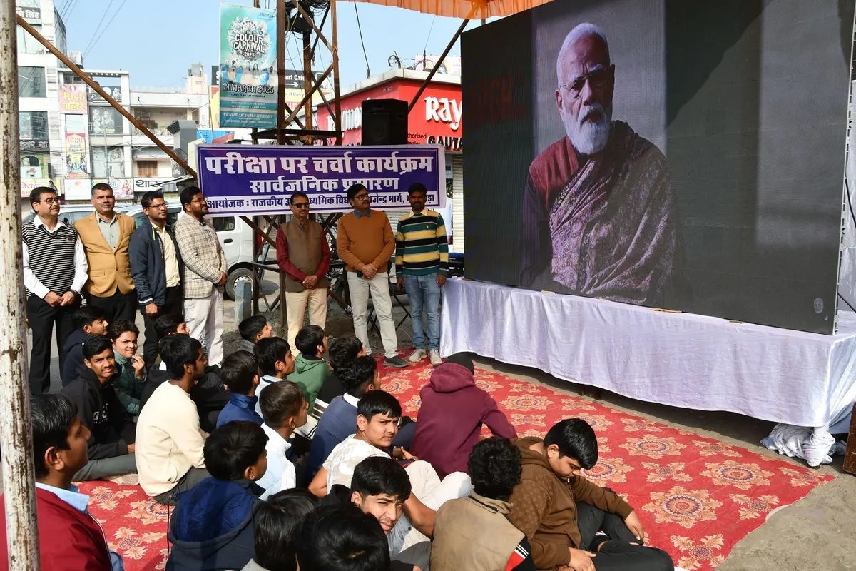 भीलवाड़ा शहर के सूचना केंद्र चौराहे पर शुक्रवार को प्रधानमंत्री नरेंद्र मोदी के लोकप्रिय कार्यक्रम 'परीक्षा पर चर्चा' के 9वें एपिसोड के सजीव प्रसारण हुआ। राजकीय उच्च माध्यमिक विद्यालय राजेंद्र मार्ग की ओर से आयोजित कार्यक्रम में जब पीएम मोदी ने परीक्षा के तनाव को हराने के गुर सिखाए, तो वहां मौजूद सैकड़ों विद्यार्थियों के चेहरे आत्मविश्वास से खिल उठे। राज्य सरकार एवं शिक्षा विभाग के निर्देशानुसार आयोजित कार्यक्रम में बड़ी संख्या में विद्यार्थियों के साथ आमजन भी 'वर्चुअल क्लास' का हिस्सा बने। प्रधानमंत्री ने लाइव संवाद के जरिए न केवल परीक्षा से जुड़ी जटिल समस्याओं पर बात की, बल्कि उनके बेहद सरल और व्यावहारिक समाधान भी बताए। पीएम के संवाद ने विद्यार्थियों को परीक्षा को एक उत्सव के रूप में लेने और सकारात्मक दृष्टिकोण अपनाने की प्रेरणा दी।