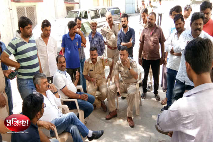 मंगरोप में मुआवजे की मांग करे समाजजनों को समझाते पुलिस व प्रशासनिक अधिकारी।