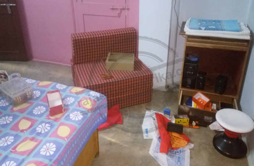 खटपट की आवाज होने से सुथार की नींद उचट गई, उसने दरवाजा खोल कर बाहर निकलने की कोशिश की, लेकिन चोरों ने दरवाजा बंद कर दिया। एेसे में सुथार का एक हाथ दरवाजे में फंस गया। इस बीच चोर जेवरात व नकदी से भरी पोटली लेकर भाग छूटे। सुथार ने हंगामा मचाया तो मोहल्ले में जाग हो गई। पुलिस ने सुथार की रिपोर्ट पर मुकदमा दर्ज कर जांच शुरू कर दी है।