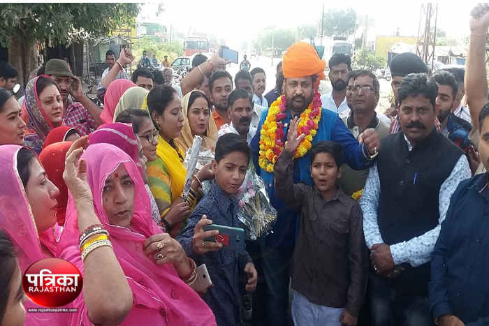 राष्ट्रीय करणी सेना के राष्ट्रीय अध्यक्ष सुखदेवसिंह गोगामेड़ी का रविवार को भीलवाड़ा यात्रा के दौरान स्वागत करते लोग