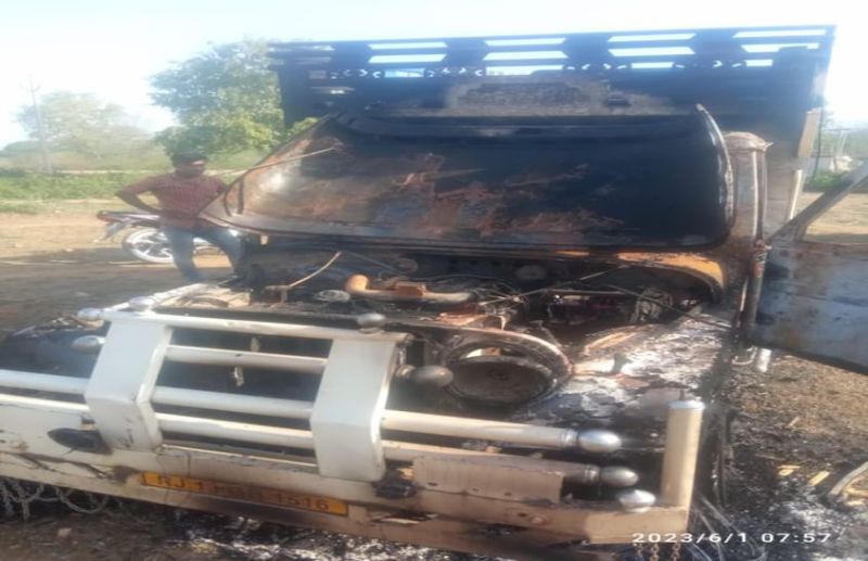 परिवादी विनोद को नीचे उतारकर मारपीट की इस बीच पिकअप से सभी पांचों बैलों( केरड़ा) को नीचे उतार दिया तथा पास ही स्थित गोशाला में ले जाकर बंद कर दिया। इसके बाद अज्ञात ग्रामीणों ने पिकअप में आग लगा दी, जिससे पिकअप जलकर नष्ट हो गई। govansh se thas dekh kar phoonk dee pikap