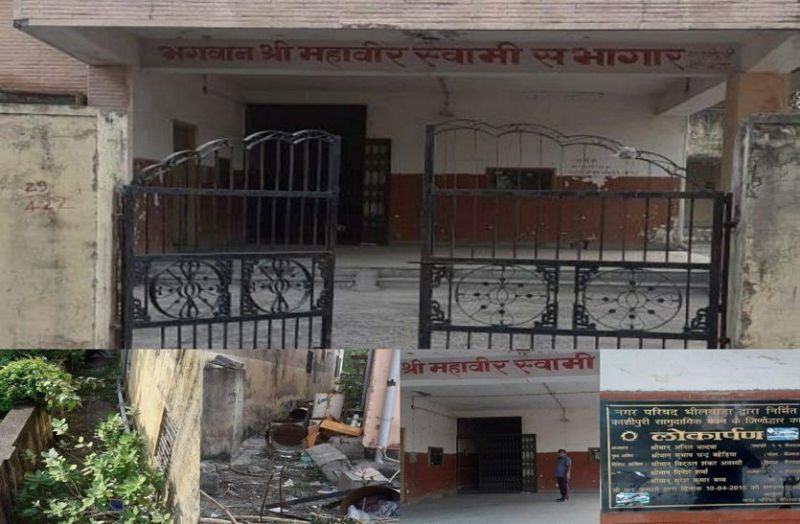 भगवान महावीर स्वामी सभागार मेन हॉल का दरवाजा खुला पड़ा है। पिछवाड़े जाकर देखा तो गलियारे में कबाड़