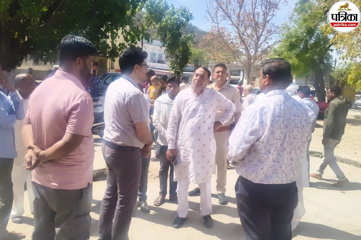 घटना की जानकारी लेते जहाजपुर विधायक समेत अन्य लोग (फोटो- पत्रिका)