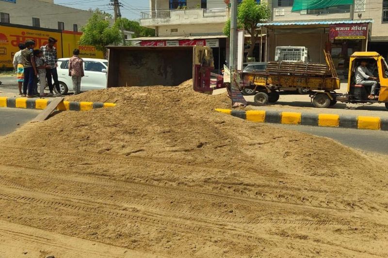 बजरी से भरी ट्रेक्टर ट्रॉली शुक्रवार को तेजसिंह सर्किल के पास पलट गई। दुर्घटना मे कोई हताहत तो नहीं हुआ, लेकिन इस घटना के फोटो वहां के जागरूक व्यक्ति ने अपने कैमरे में कैद कर लिए। ट्रेक्टर चालक ट्रॉली को मौके पर छोड़कर भाग निकला। इस बीच बजरी माफिया से जुड़े लोग मौके पर पहुंचे और फोटो खींचने वाले युवक को डरा-धमकाकर मोबाइल से फोटो डिलिट करवाकर चले गए।