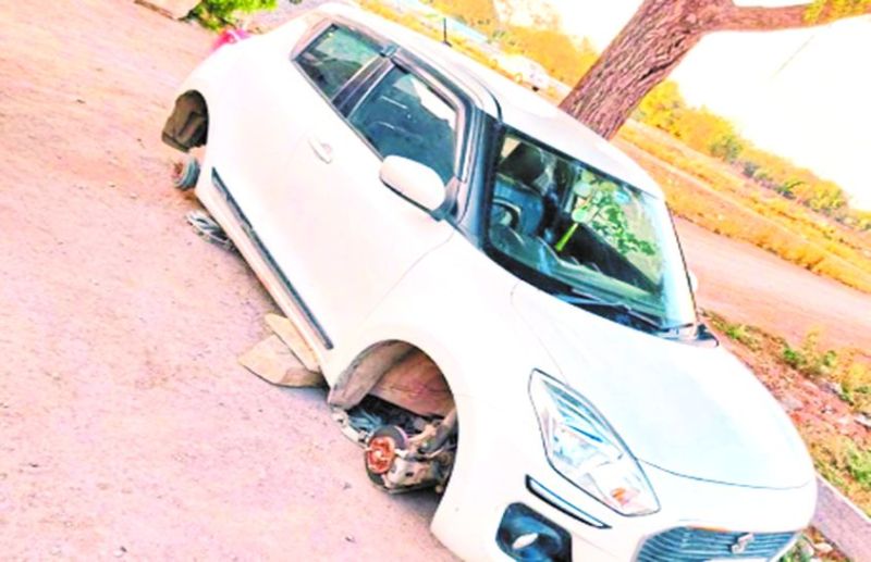 यह क्या, चोर कार के चारों टायर खोल ले गए