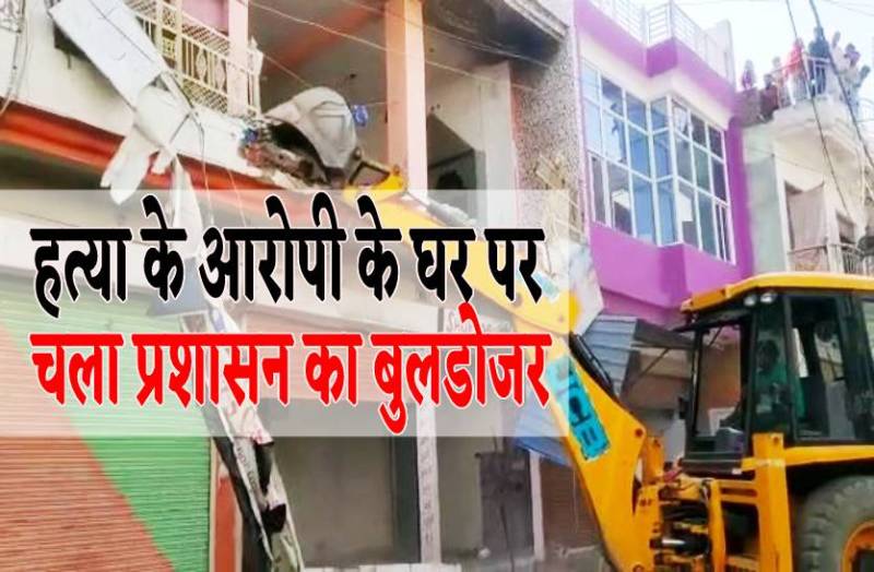 हत्या के आरोपी के घर पर चला प्रशासन का बुलडोजर