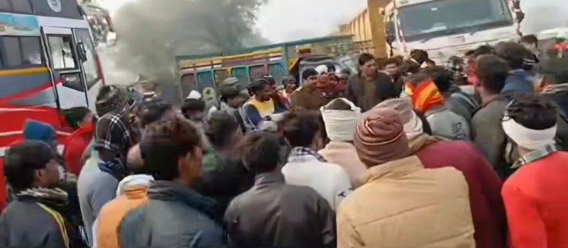 हादसे के बाद परिवार व रिश्तेदार जवाहरपुर पहुंचे। गुस्साए लाेगों ने रोड पर शव रखकर चक्काजाम कर दिया। एसआई विजय शिवहरे ने पुलिसबल के साथ समझाइश दी, लेकिन परिजन ने शव नहीं उठाने दिया। परिवार वाले आरोपी चालकों को पकड़ने और आर्थिक सहायता की मांग को लेकर अड़े थे। देहात थाने से टीआई मुकेश शाक्य पहुंचे और आक्रोशित भीड़ को समझाकर मामला शांत करवाया। एक घंटे बाद परिजन शव को पीएम के लिए जिला अस्पताल लेकर रवाना हुए, तब जाम खोला गया।