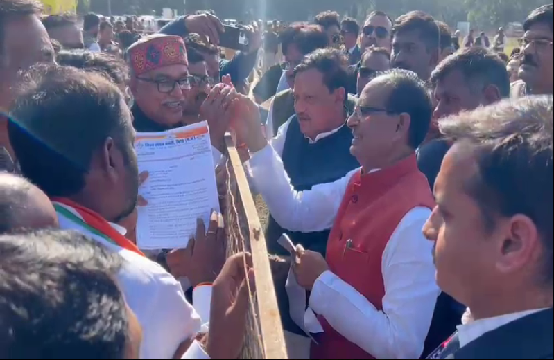 जन सेवा अभियान के तहत भिण्ड आए मुख्यमंत्री शिवराज सिंह चौहान द्वारा प्रदेश में विकास यात्रा (MP Vikas Yatra) की शुरुआत करने के पश्चात वापस लौटते समय रविवार को कांग्रेस की ओर से उन्हें हेलीपेड पर एक ज्ञापन सौंपा गया है। बताया जा रहा है कि ज्ञापन में उदोतपुरा में एक 16 वर्षीय बालिका की हत्या के आरोपियों को न पकड़े जाने का मामला उठाया गया, तो वहीं मेहगांव में तीन हत्या के प्रमुख आरोपी की गिरफ्तारी न होने का मामला भी उठाया गया।