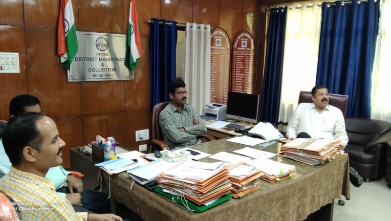 कलेक्टर चैंबर में चर्चा करते अधिकारी
