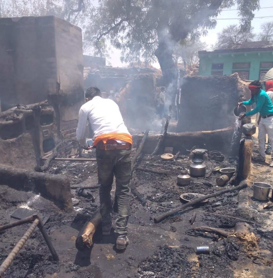 पानी पूरी का ठेला लगाने वाला मनीष कुशवाह अपने चार वर्षीय बेटे कबीर के बीमार होने की वजह से घर पर था। बेटे के इलाज में आर्थिक मदद देने के लिए उसकी सास जावित्री देवी (58) अपने गृहगांव चरथर से दो दिन पूर्व ही 10 हजार रुपए लेकर पहुंची थीं। उन्हें क्या पता था कि उनकी पाई-पाई कर जोड़ी गई 10 हजार रुपए की रकम आग में स्वाह हो जाएगी। मनीष जैसे-तैसे मजदूरी कर अपने परिवार पाल रहे हैं। लेकिन रविवार को हुई इस आगजनी में उसकी चार माह की बेटी राधा की मौत हो जाने के अलावा कपड़े, बाइक, गल्ला, थैले में रखे सास जावित्री के 10 हजार रुपए व अन्य गृहस्थी का सामान जलकर राख हो गया है। आलम ये है कि ओढऩे बिछाने तक को कुछ नहीं बचा है।