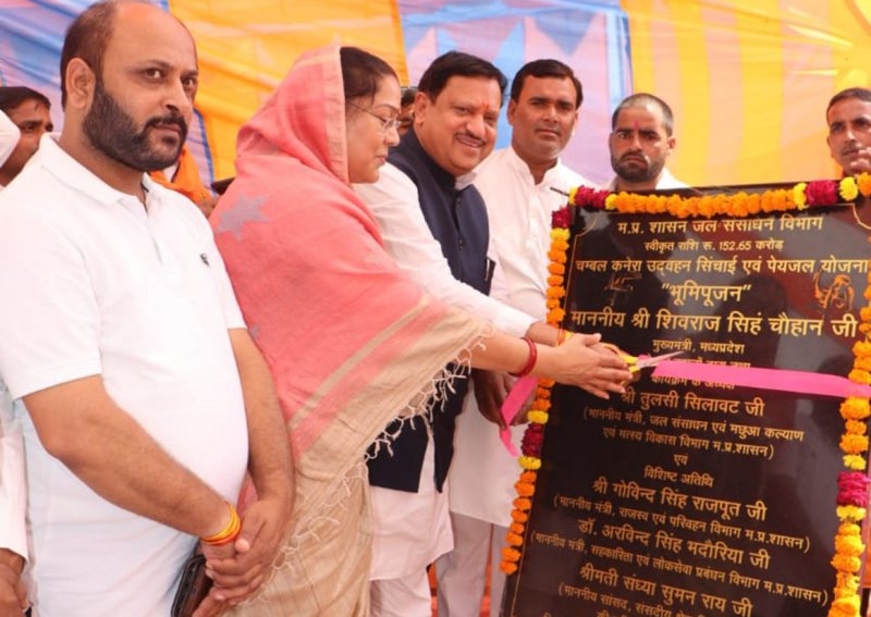 कनेरा परियोजना का शिलान्यास करते सहकारिता मंत्री डॉ. अरविंद सिंह भदौरिया।