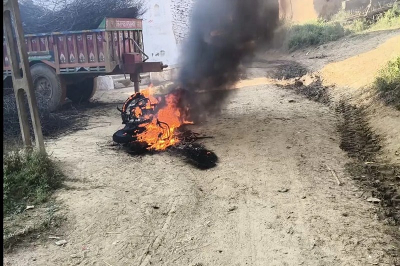 फायरिंग होते ही स्वामी शरण और उनकी पत्नी जान बचाने के लिए घर के अंदर छिप गए। इसके बाद आरोपियों ने घर के बाहर खड़ी बाइक को आग के हवाले कर दिया। आग लगने से बाइक पूरी तरह जलकर राख हो गई। ग्रामीणों में दहशत का माहौल बन गया।