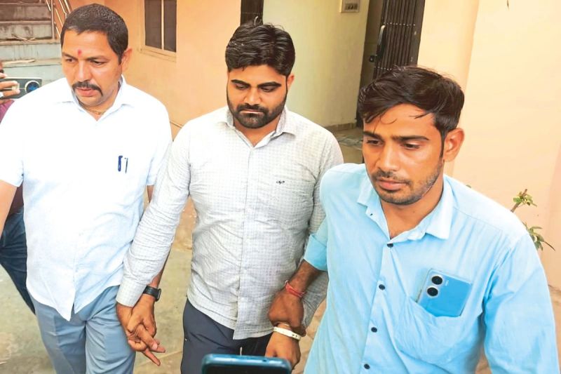 एसीबी की गिरफ्त में रीडर ललित यादव बीच में (फोटो: पत्रिका)