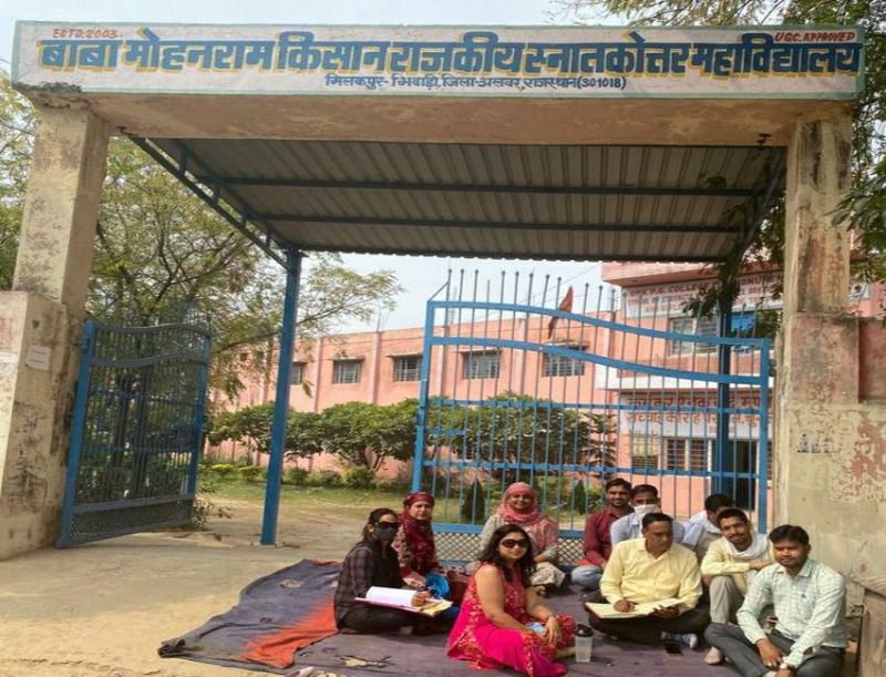 भिवाड़ी. बाबा मोहनराम पीजी कॉलेज के शैक्षणिक और अशैक्षणिक स्टाफ ने शनिवार को कॉलेज गेट पर धरना प्रदर्शन किया। प्रदर्शन में शामिल स्टाफ ने बताया कि कमेटी अध्यक्ष राजेंद्र विधूड़ी, चेयरमेन कर्नल एसएस तंवर और कोषाध्यक्ष हवलदार रतिराम दायमा ने शुक्रवार दोपहर को उन्हें मौखिक आदेश दिया कि पूरा स्टाफ जिसमें ११ शैक्षणिक और आठ अशैक्षिणक को शनिवार से कॉलेज में प्रवेश में नहीं दिया जाएगा। जबकि स्टाफ में शामिल कुछ सदस्य २००३ से कार्यरत हैं। इस तरह एक मौखिक आदेश से दशकों से काम कर रहे कर्मचारियों को एक झटके में कॉलेज से बाहर निकाल दिया गया। शनिवार को जब स्टाफ सदस्य १० बजे कॉलेज पहुंचे तो उन्हें अंदर प्रवेश नहीं दिया गया, इसके बाद सभी स्टाफ सदस्य एकत्रित होकर कॉलेज गेट पर धरने पर बैठ गए। धरने में शामिल स्टाफ ने बताया कि अगस्त महीने से करीब साढ़े सात महीने का वेतन नहीं मिला है। इसके बाद भी हमारे साथ इस तरह का रवैया अपनाया गया, जो कि किसी प्रकार से व्यवहारिक नहीं है। २२ दिसंबर २०२० को आयुक्त कॉलेज शिक्षा जयपुर के आदेश हैं कि जब तक राज्य सेवा में समायोजन की प्रक्रिया पूर्ण नहीं होती है, तब तक कार्यरत कर्मचारियों को प्रबंध समिति अपने संसाधानों से वेतन देगी। २९ जुलाई २०१९ को मुख्यमंत्री ने बाबा मोहनराम कॉलेज को राज्याधीन करने की घोषणा की थी। कॉलेज में कार्यरत स्टाफ को भी राज्य सेवा में समायोजन की घोषणा हुई। एक अगस्त २०२० को महाविद्यालय को वित्तीय एवं प्रशासनिक स्वीकृति जारी की गई। महाविद्यालय में कार्यरत स्टाफ के समयोजन करने की नियम एवं सेवा शर्तों की प्रक्रिया २२ दिसंबर २०२० को जारी की गईं। इसके बाद दस्तावेज सत्यापन भी हो गया।
