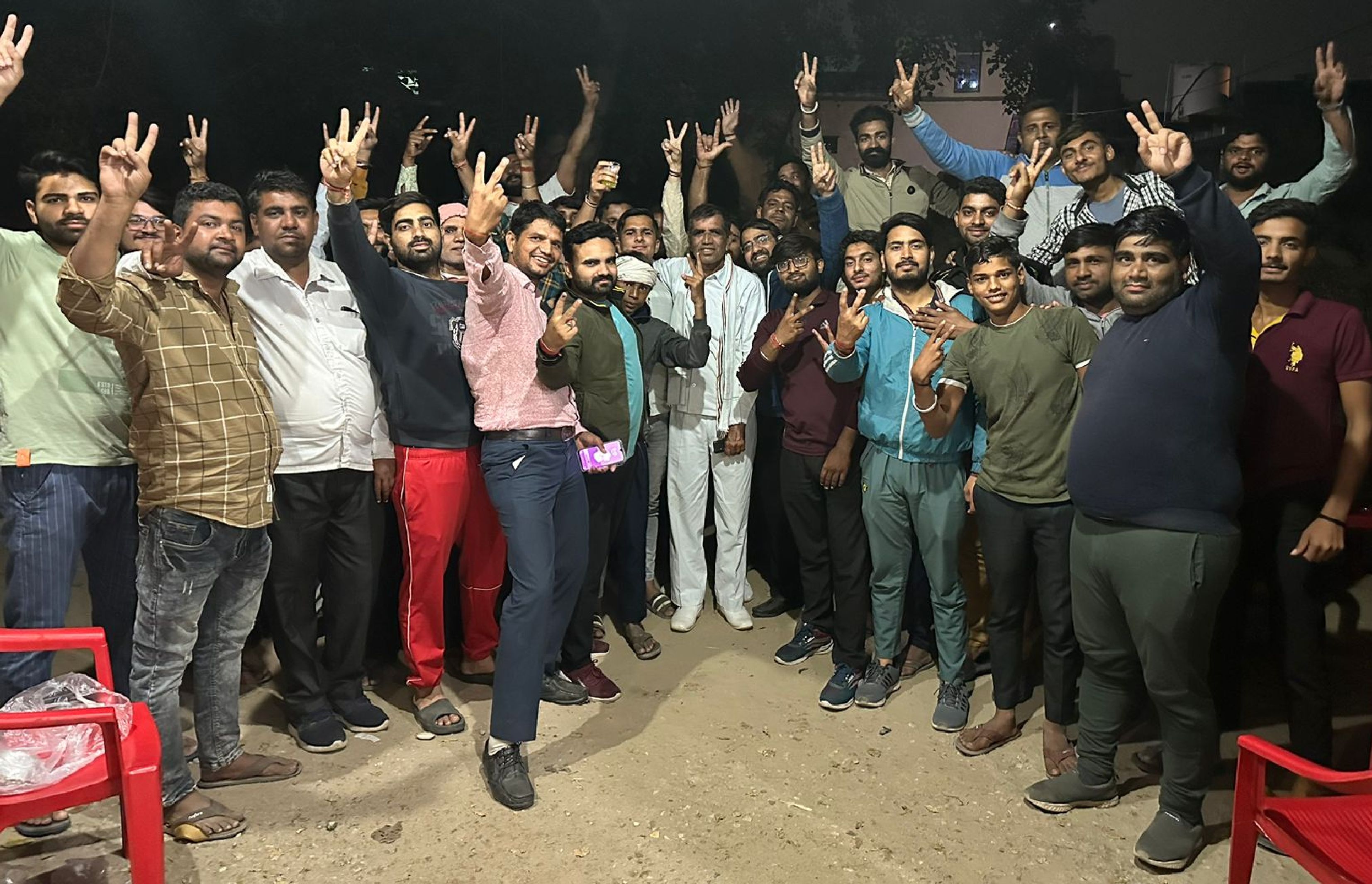 धारूहेड़ा. जीत के बाद जश्न मनाते समर्थक।