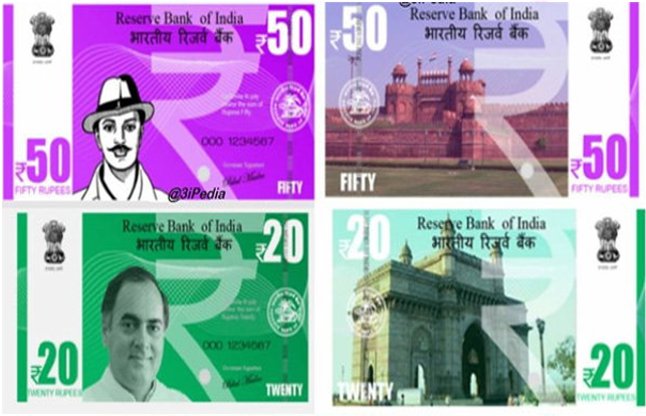 20 और 50 के नए नोट पर इंदिरा, राजीव और भगत सिंह का फोटो!