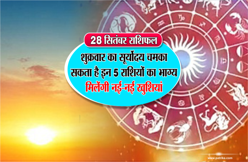 भोपाल। 28 सितंबर 2018 दिन शुक्रवार को पांच राशियों के लिए दिन काफी शुभ रह सकता है। शहर के ज्योतिषाचार्य पंडित जगदीश शर्मा बताते है कि पांच राशियों को कहीं से नई खुशियां मिलने वाली हैं। पंडित जी से जानिए कि कैसा रहेगा आपका आज दिन....