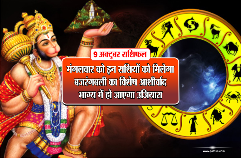 भोपाल। 9 अक्टूबर दिन मंगलवार को बजरंगबली का कृपा से 3 राशियों का दिन काफी अच्छा रहने वाला है। शहर के ज्योतिषाचार्य पंडित जगदीश शर्मा से जानिए आज का राशिफल....