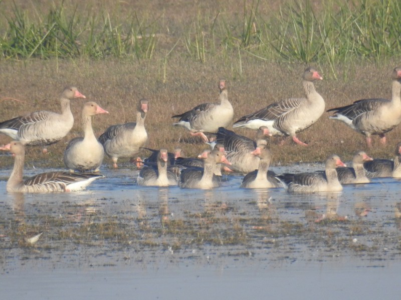 भोज ताल पर पहली बार दिख रहा ग्रे लेग गूज का झुण्ड