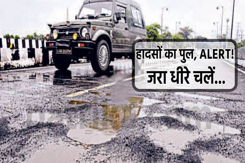Ambedkar Bridge Potholes: जनवरी में मिली थी अंबेडकर ब्रिज की सौगात, जुलाई में फिर बेहाल, हादसों की आशंका बढ़ी। (Photo Source: patrika)