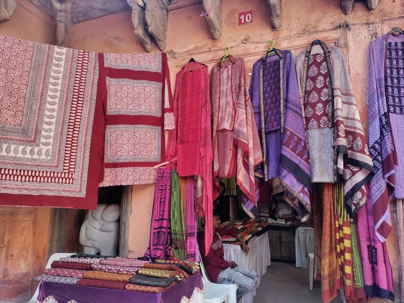 भोपाल. गौहर महल में रविवार से बाघ और कुक्षी ब्लॉक प्रिंट महोत्सव 2023 शुरू हो गया है। इसका उद्घाटन हथकरघा आयुक्त अनुभा श्रीवास्तव ने किया। इसमें 55 से अधिक बाघ कारीगरों के 22 स्टॉल लगे हुए हैं। इसमें खास तौर पर सूट, साड़ी, पर्दे, दरी, कार्पेट, बेडशीट, रनर्स आए हैं। ये सभी अलग-अलग फ्रैबिक पर बने हैं। बाघ प्रिंट महोत्सव 27 फ़रवरी तक चलेगा। अलग-अलग इलाकों से आए कारीगर अपने साथ माहेश्वरी, कॉटन, सिल्क, मलबरी सिल्क, शिमर, सेंट्रून, क्रेप, जॉर्जट फ्रेबिक पर खास बाघ और कुक्षी प्रिंट उकेर कर लाए हैं। इस बार स्टिच्ड मेटेरियल भी आया है।